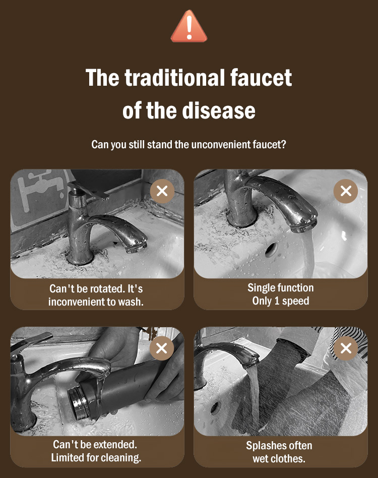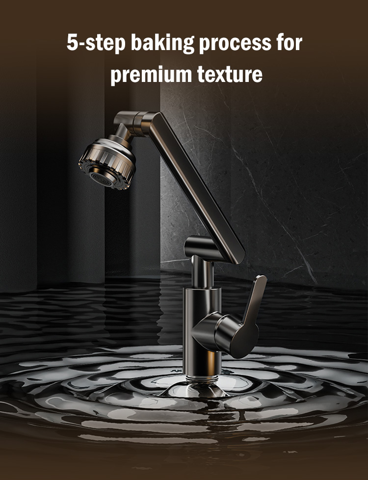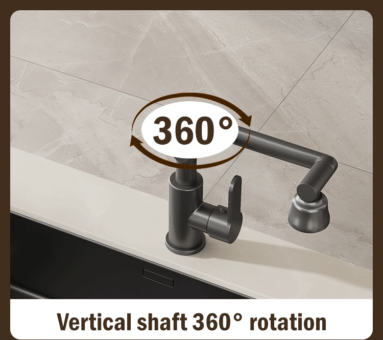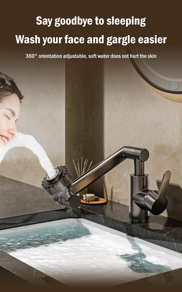 1080° rotating design makes face and hair washing easier than ever. Say goodbye to uncomfortable bending. Splash-proof mode perfect for both kitchen and bathroom.